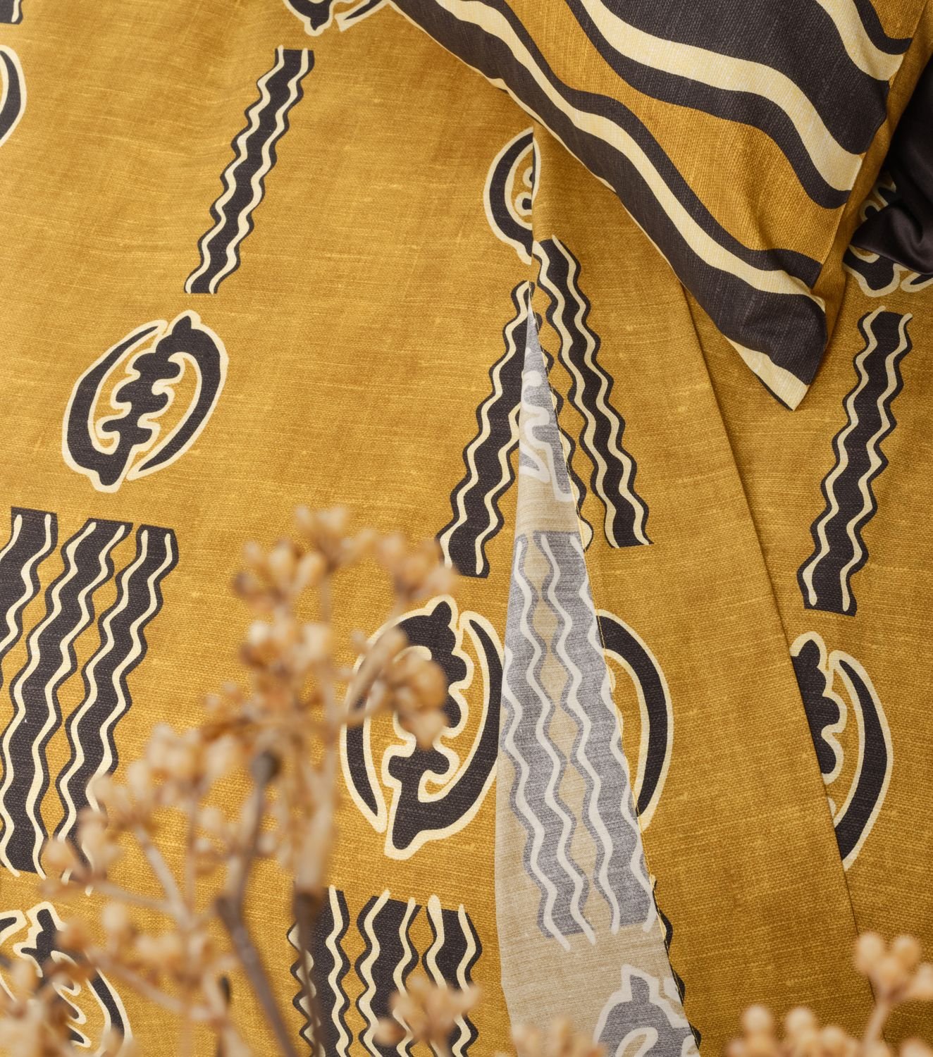 Découvrez le raffinement de la parure Terre, un hymne à la beauté de la nature. La teinte inspirée du bogolan malien, évoque la beauté brute et organique de la terre. Grâce à notre technologie d’impression digitale, nous avons capturé avec précision la teinte authentique du bogolan traditionnel. Une couleur qui révèle la splendeurde la terre, et qui rend hommage aux artisans maliens ainsi qu’à leur méthode de teinture respectueuse de l’environnement, utilisant de la boue et des matières premières naturelles. En intégrant la collection Terre dans votre chambre, vous y insufflerez une énergie positive et apaisante où le sommeil devient une célébration de la nature.